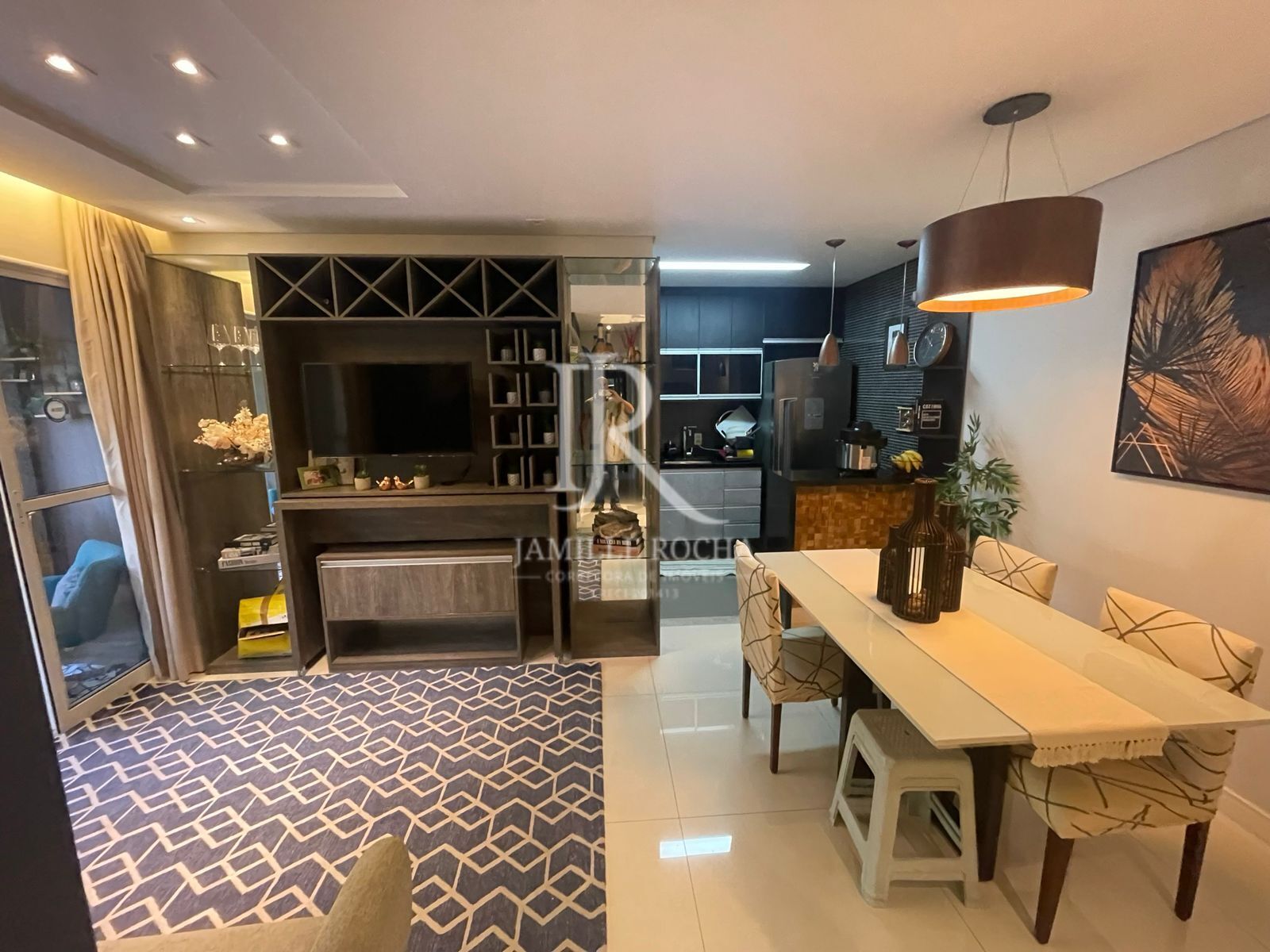 Ficam todos os planejados, geladeira, cooktop, coifa, poltronas sacada, cortinas e tapete.