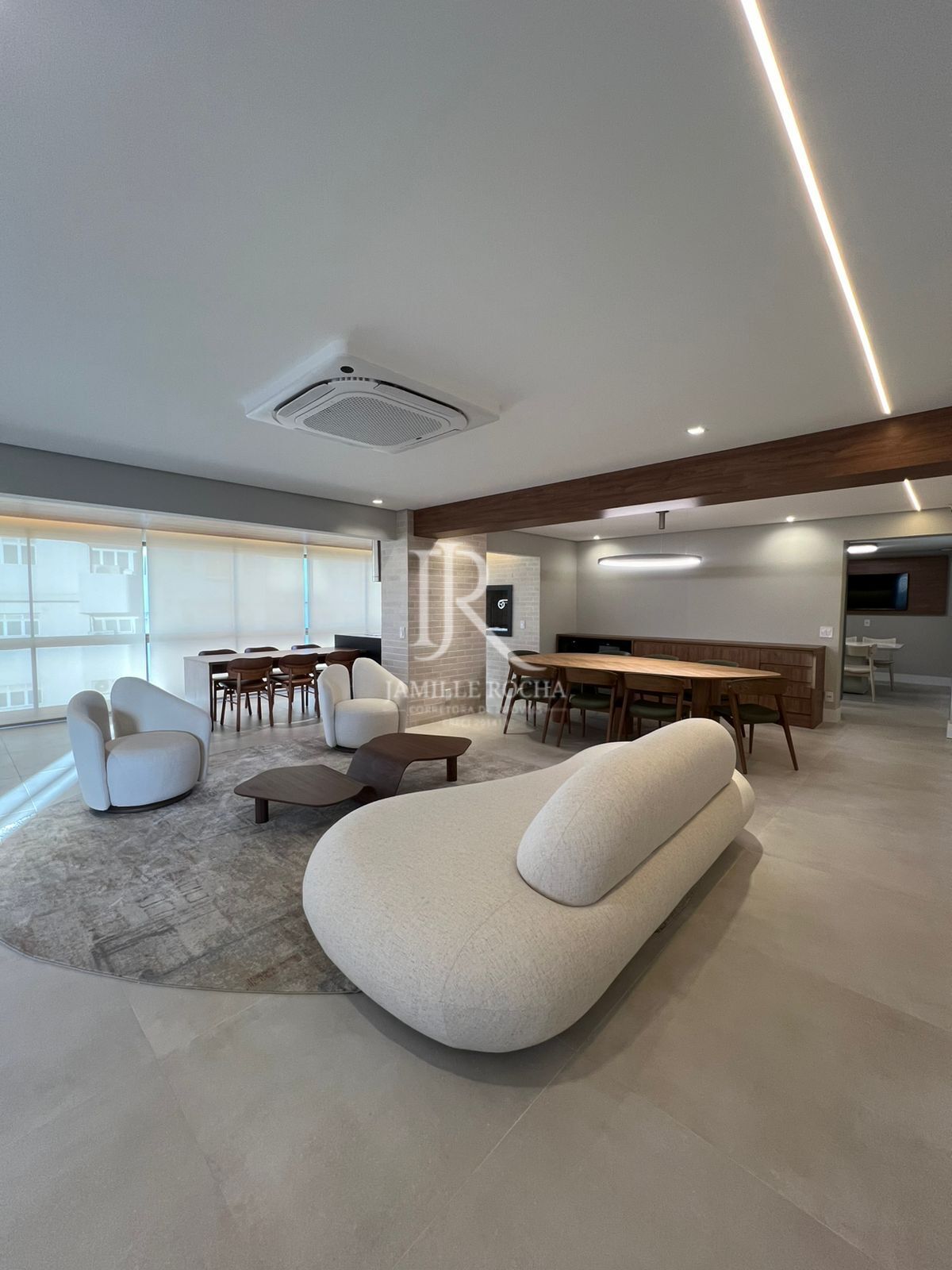 . Sala de jantar, sala de estar, área gourmet e sala de lareira (todas integradas)