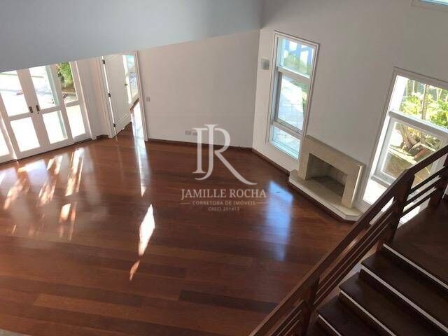 ’Casa de 480 m² de área construída, com 4 suítes, home, escritório, living para 3 ambientes, lareira, copa e cozinha, lavabo, dependência de empregada, brinquedoteca com banheiro, espaço gourmet e piscina.